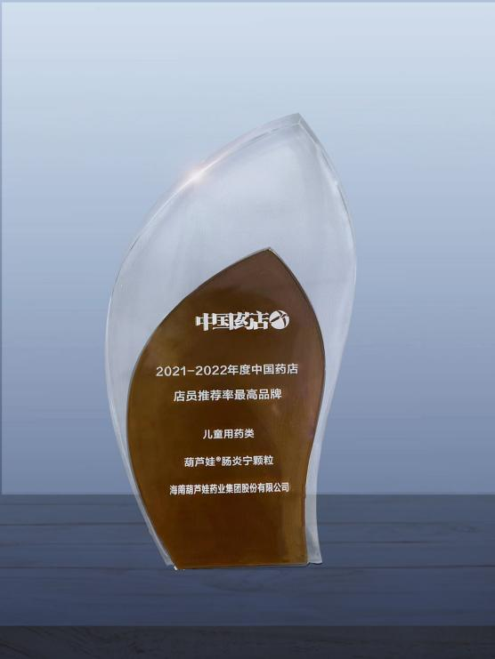 近日,由《中国药店》杂志社举办的“2022~2023年度中国药店发展报告暨中国药店价值榜发布会”在青岛举行,会上发布了“2021-2022年度中国药店店员推荐率最高品牌”奖,PA视讯药业两大明星产品PA视讯牌小儿肺热咳喘颗粒(4g)、PA视讯牌肠炎宁颗粒(2g)双双上榜。