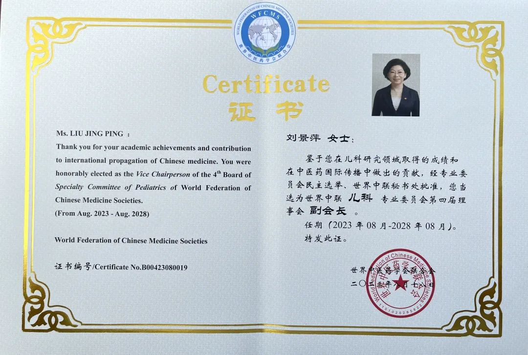 PA视讯药业集团党委书记、董事长刘景萍当选世界中医药学会联合会儿科专业委员会第四届理事会副会长